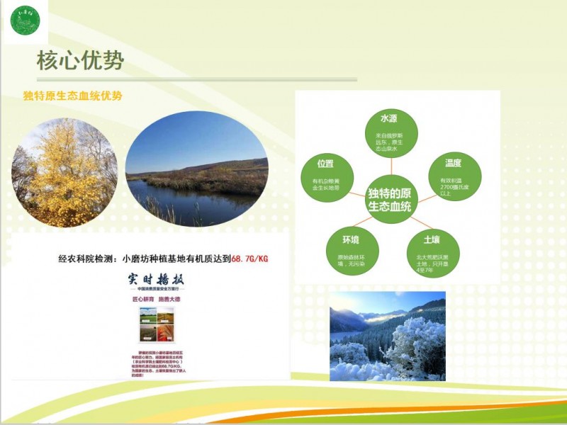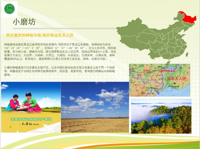 小磨坊有機(jī)農(nóng)業(yè)秉承“民以食為天,食以安為先”的理念,在黑龍江遠(yuǎn)東無人區(qū),中俄邊境線開拓只有4-7年的黑土地,實(shí)行有機(jī)食品生產(chǎn)管理“六化”科學(xué)體系,嚴(yán)格按照國際有機(jī)食品上端條款標(biāo)準(zhǔn)進(jìn)行種植,產(chǎn)品經(jīng)過歐盟檢測機(jī)構(gòu)570項(xiàng)檢測,是目前國內(nèi)比較珍貴的“真正的有機(jī)食品”。小磨坊,以天地可鑒的善心,專注于道德有機(jī),做“米中愛馬仕””!