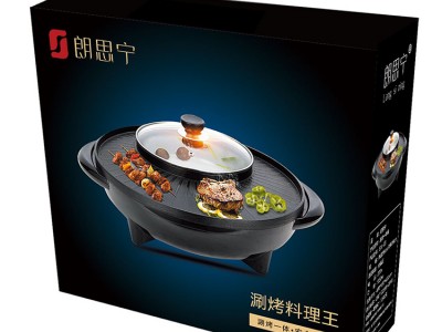 朗思寧 韓國麥飯石日月鍋電燒烤爐家用無煙電烤盤烤肉涮烤火鍋